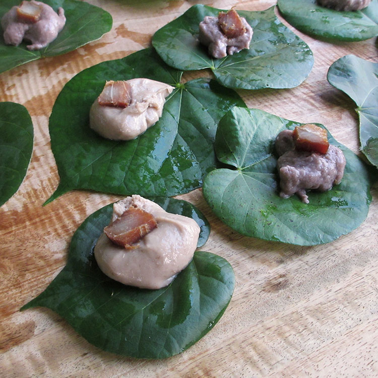 All over Hawaii, you will see little green balls being served up. These tasty treats are pieces of meat or fish wrapped up in taro leaves.