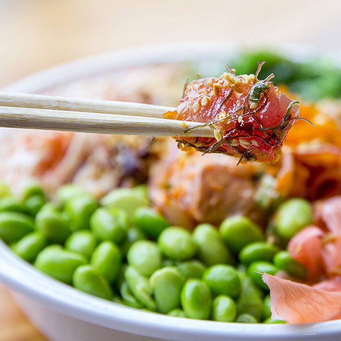 Poké has been a favorite for ages on the islands. This Hawaiian raw fish dish was originally made with a unique type of local sea salt called pa’akai along with roasted candlenuts and a kind of seaweed called limu. While it sounds exotic, the ingredients are good but mild so that the ultra-fresh seafood can take centerstage.