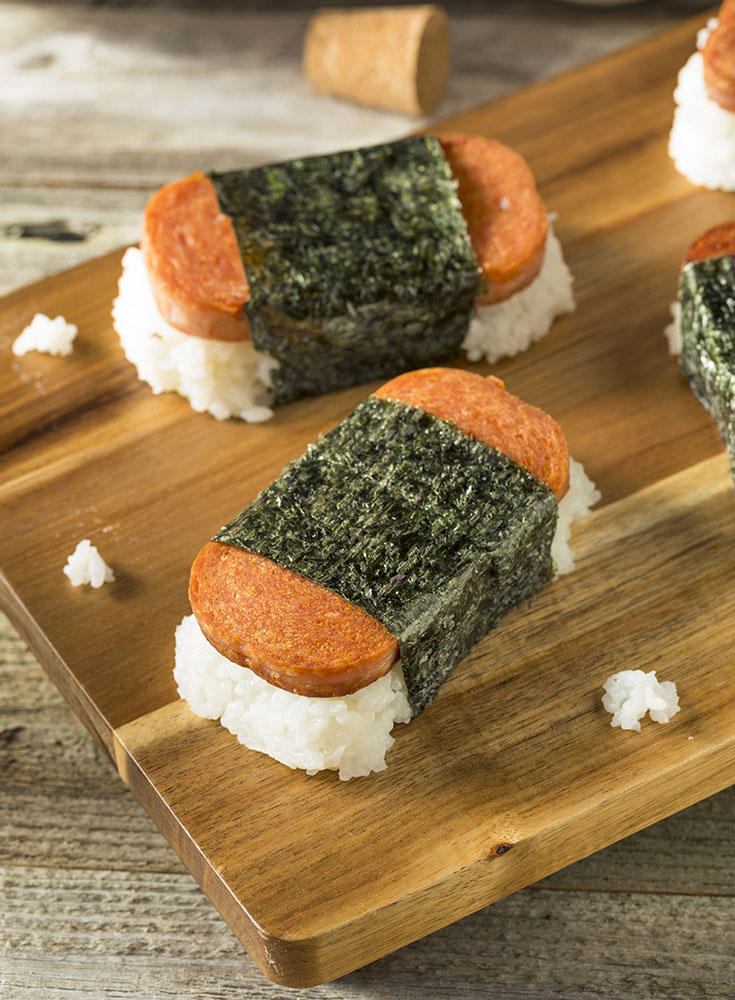 Minnesota’s greatest export, Spam, has become an honorary Hawaiian food. If you’ve never tried it, it’s time to broaden your horizons. If you have had it before, give it another shot as in a Spam Musubi. Made with rice, fried Spam, and dried seaweed, this is so much better than you think it is going to be.