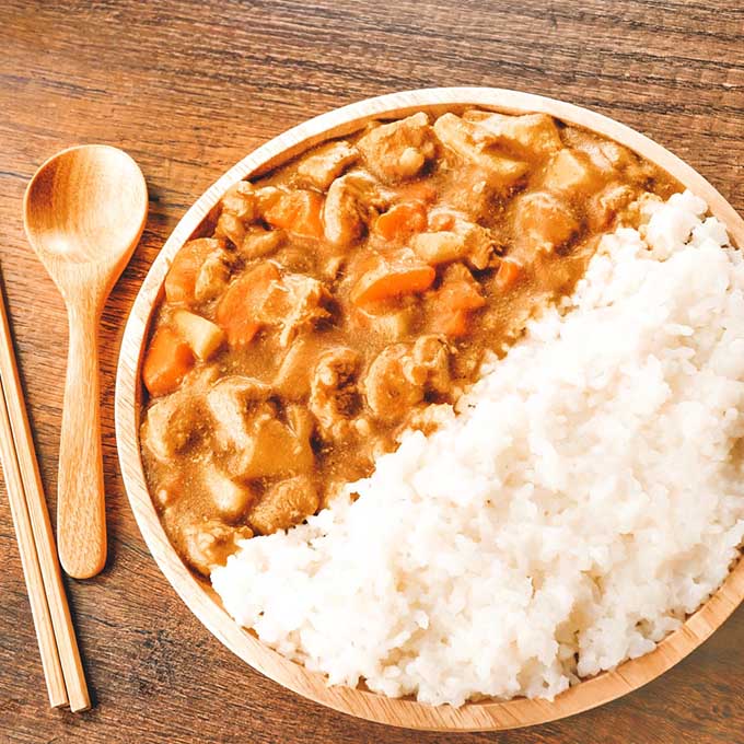 Kare Raisu is one of the most popular dishes in Japan and it’s rice with curry. The basic ingredients are onions, carrots, and potatoes, beef, pork, and chicken.