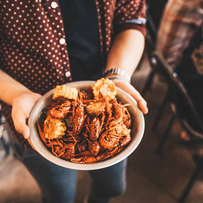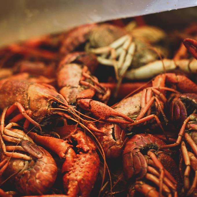 Swimming in a sea of spice, you’ll find crawfish alongside corn on the cob and potatoes. Early March until mid-June is the prime time to get crawfish and you will find them all over town.