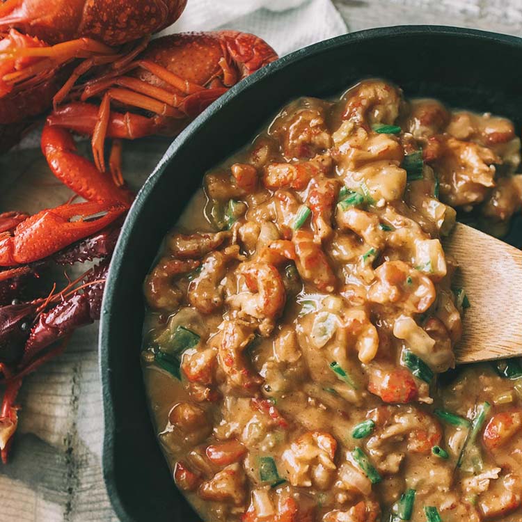Étouffée is the perfect hearty meal. This plate of shellfish and rice uses the traditional Cajun and Creole cooking method of “smothering,” which is slow cooking over low heat with a hearty dose of liquid seasoning.