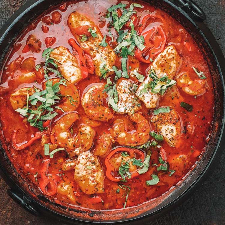 An absolute mash-up of ingredients and influences, this African-Spanish-French dish is a blend of rice, veggies, seafood, meat and every spice in the cupboard. It is similar to Spanish paella, West African jollof, and French jambalaia.