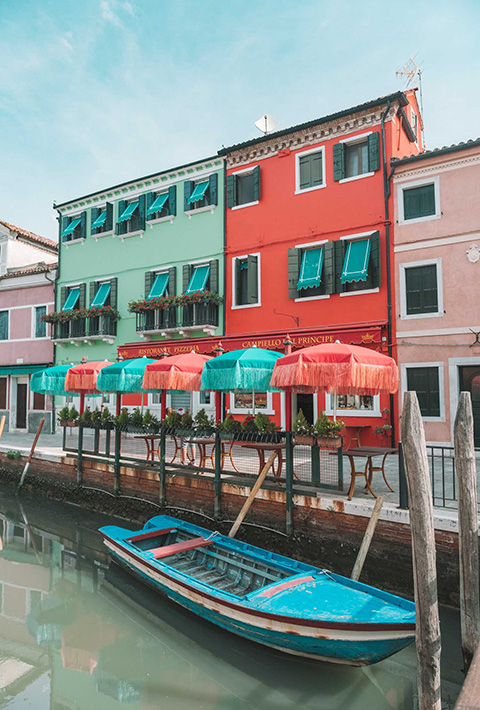 The island of Burano is known for its bright colorful buildings and vibrant art scene.