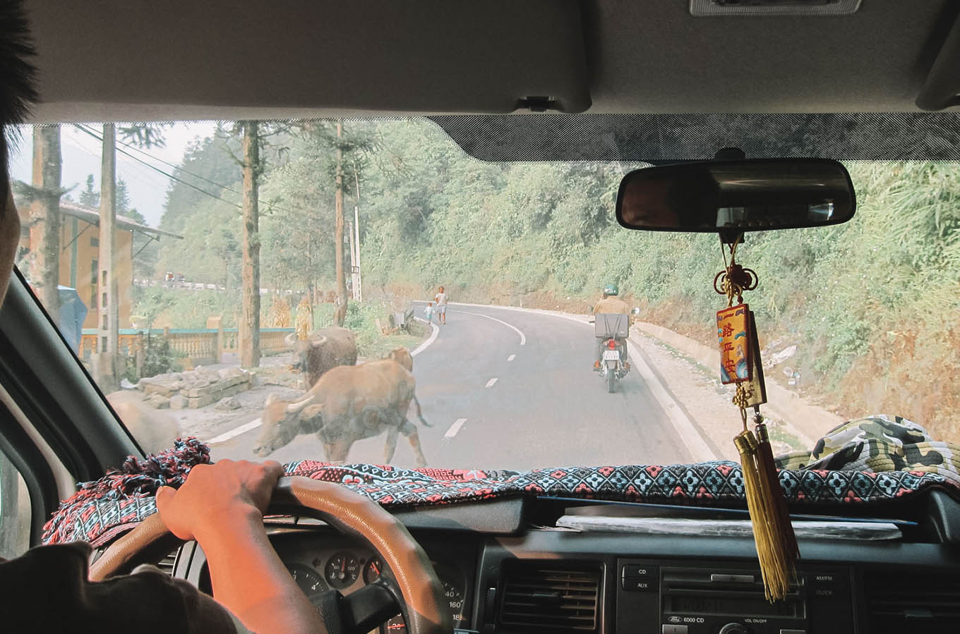 My bus to Sapa was complete with bovine roadblocks—how crazy is that? Hong picked me up directly from my bus transfer and took me to a little hotel where I would spend my first night. We didn’t waste any time. I showered, dropped off some clothes to be laundered, and then Hong and I hit the road on her motorbike.