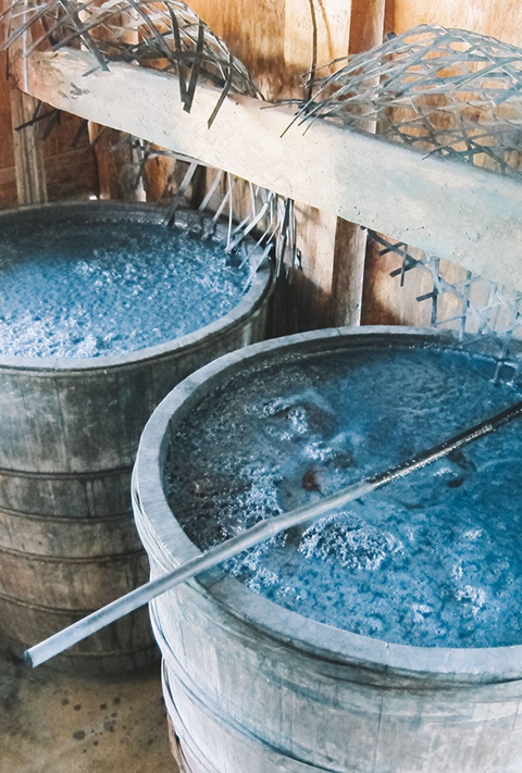 The Hmong people dress in all black and use indigo to dye the fabric they make by hand. In many homes, there were big vats of the indigo concoction and big wooden looms.