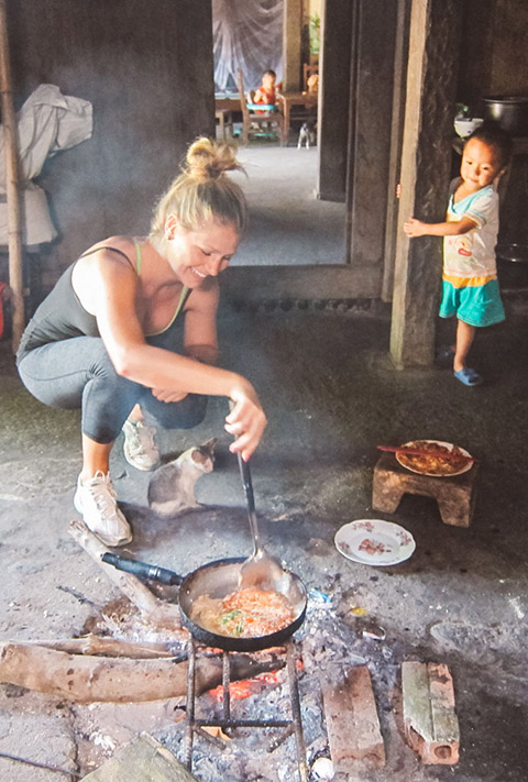 We visited the school in each little village and made lunch with a Zay family in Ta Van. They were making rice wine in a giant barrel when we arrived.