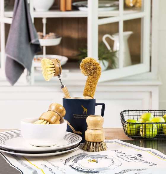 Go green with this natural bamboo dish scrub brush set that is made from natural coconut fiber, sisal and bamboo.
