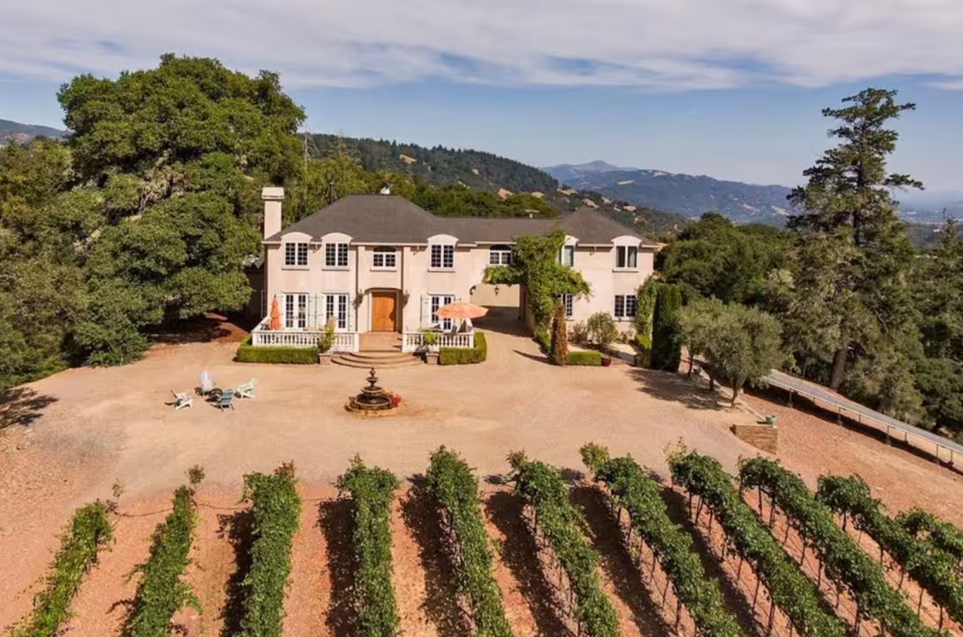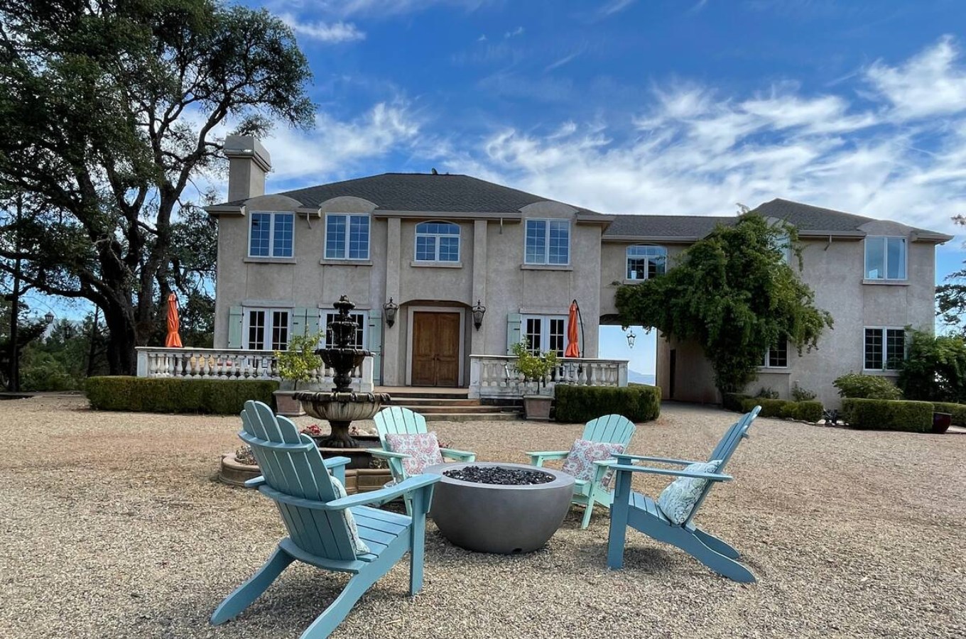 Located above the rolling vineyards of Alexander Valley, this Tuscan-inspired villa offers a luxurious escape surrounded by Sonoma County’s wine country charm.