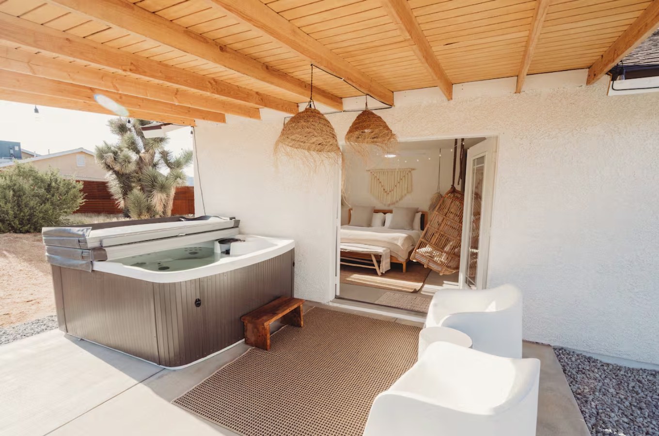 While you could spend a weekend just admiring the space, you can also take a quick 15-minute drive to Joshua Tree National Park or hop in the car for a ten-minute trip to Pioneertown.