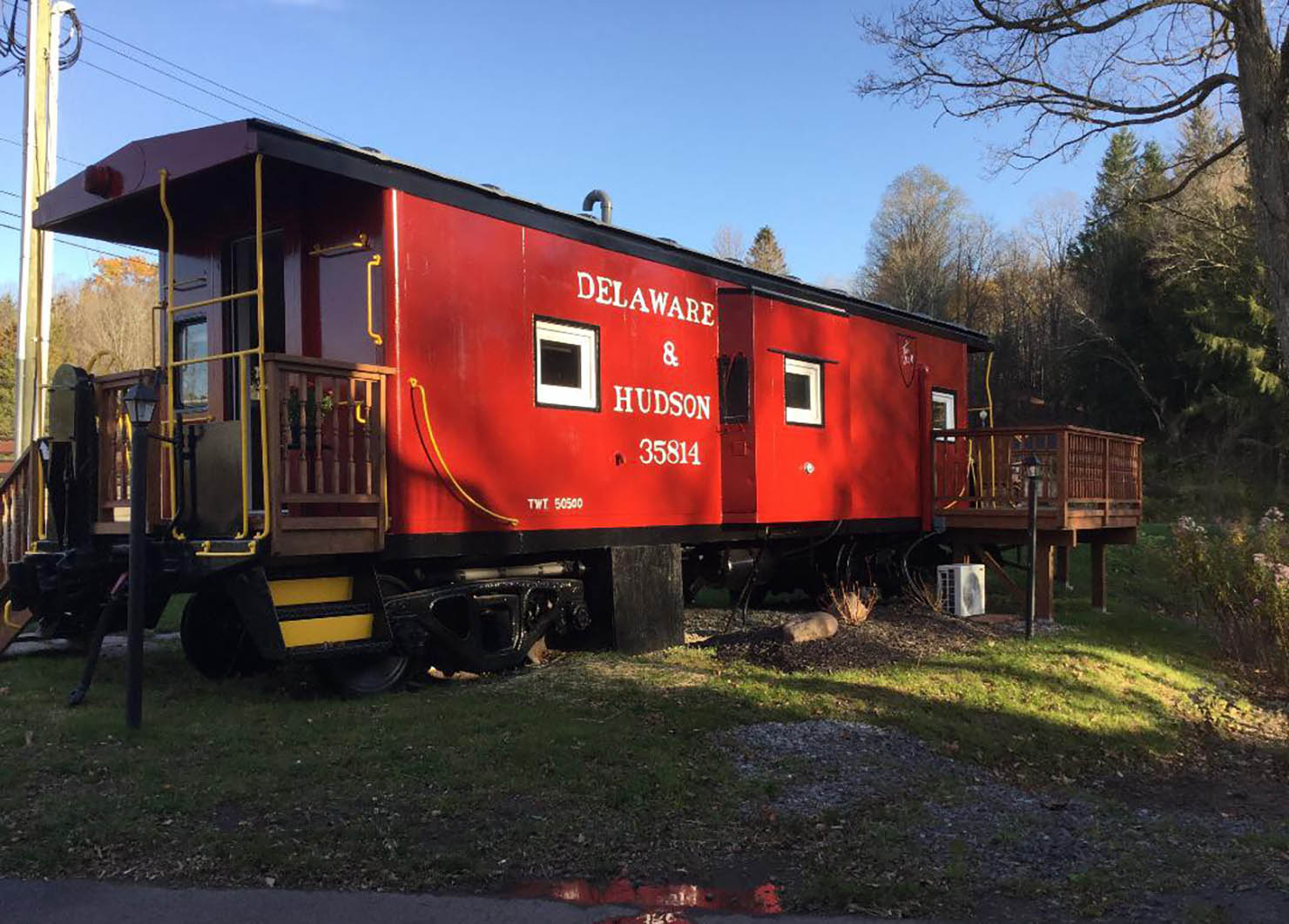 Sleep in a caboose train from 1922 for a unique and historical experience! This “home” is actually a restored caboose from nearly 100 years ago, now outfitted with a queen bed, tiny kitchen and full bathroom for comfortable living arrangements.