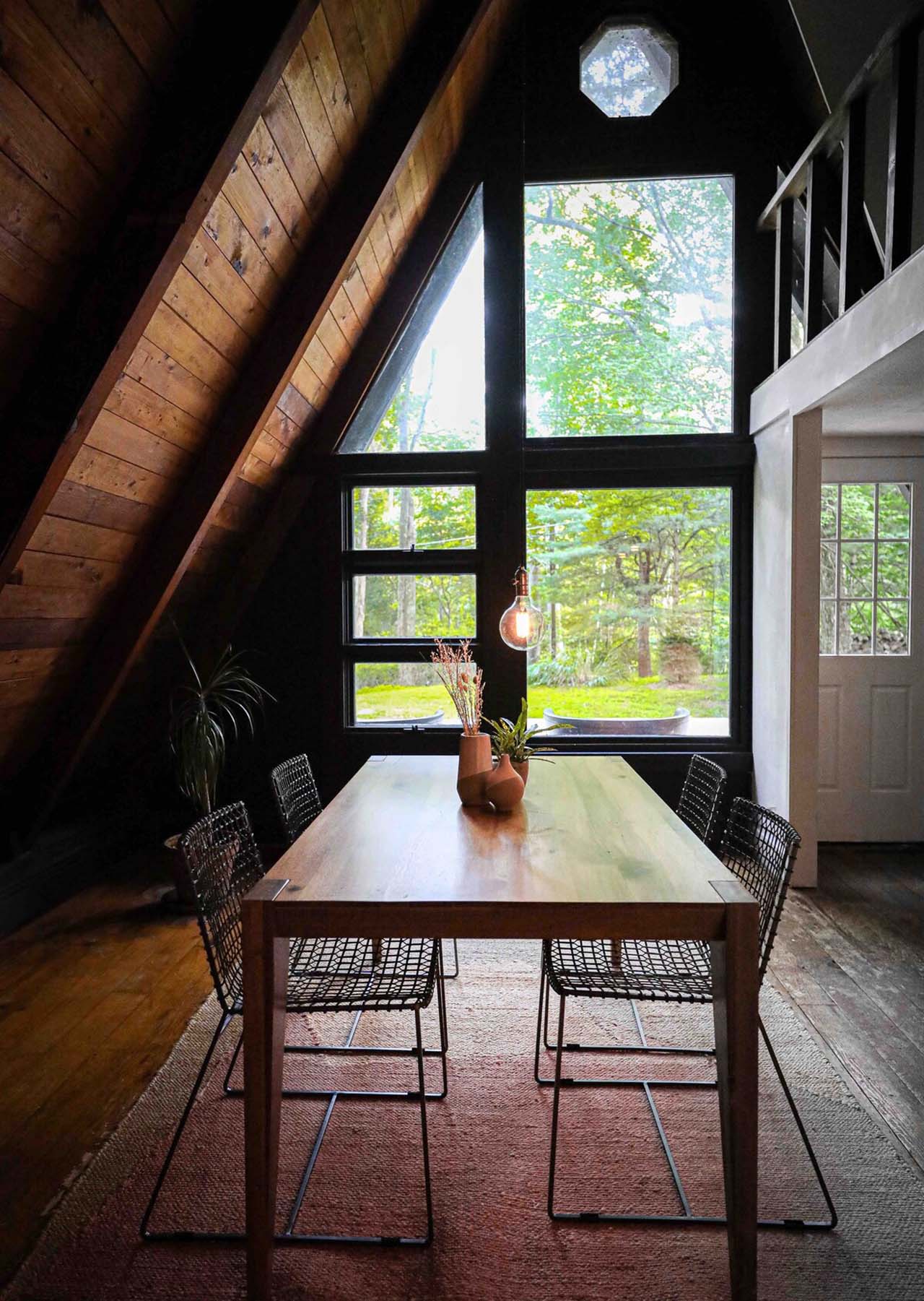 This 1961 cabin was named the “Coolest A-frame in NY” by the New York Post in 2020! The A-frame is a newly renovated, solar-powered, and modified home set on sprawling two acres of deeply wooded Catskill forests.