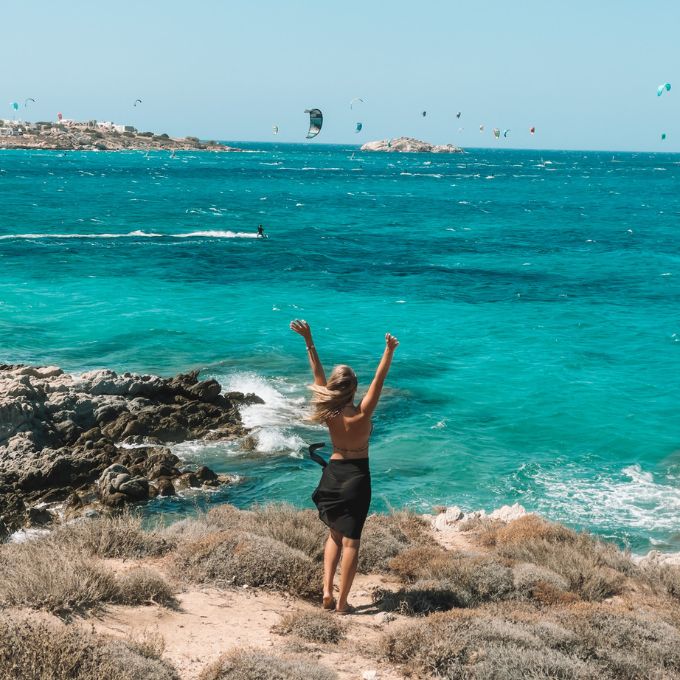 If you love water sports, this is an especially good spot. It gets more wind than other Greek islands so windsurfing, kitesurfing, and plain old surfing are popular here. You’ll find a selection of schools that’ll help you get going on the water.