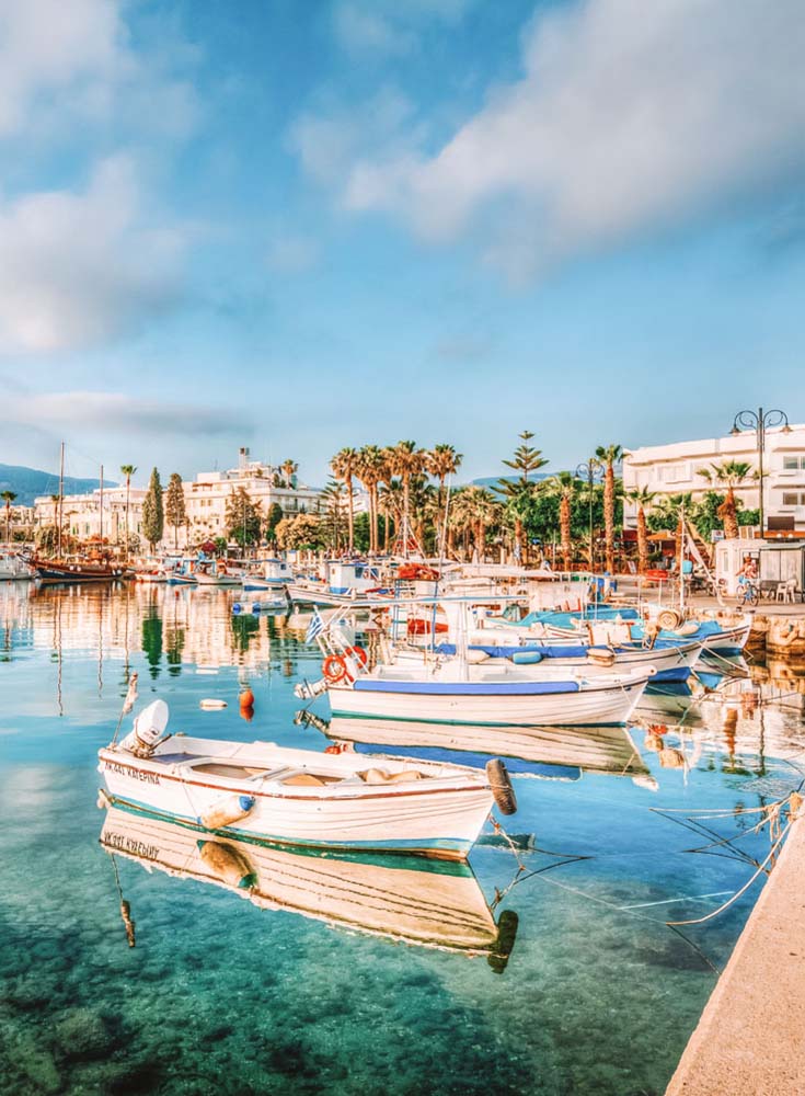 Another of Greece’s renowned Dodecanese islands, Kos is a tourist fave. Dotted with fascinating Greek and Roman ruins, this island has no shortage of lush sandy beaches.