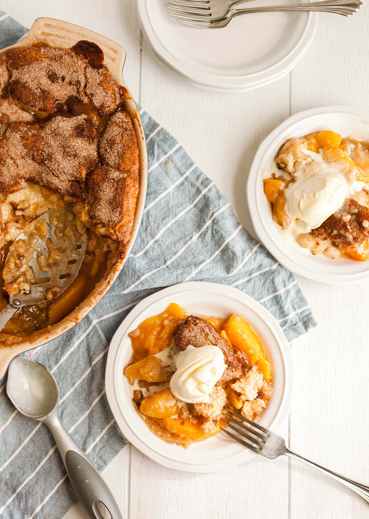 The best way to skin peaches for this recipe is by blanching them. Also, my favorite cobbler is peach blueberry—definitely worth trying!