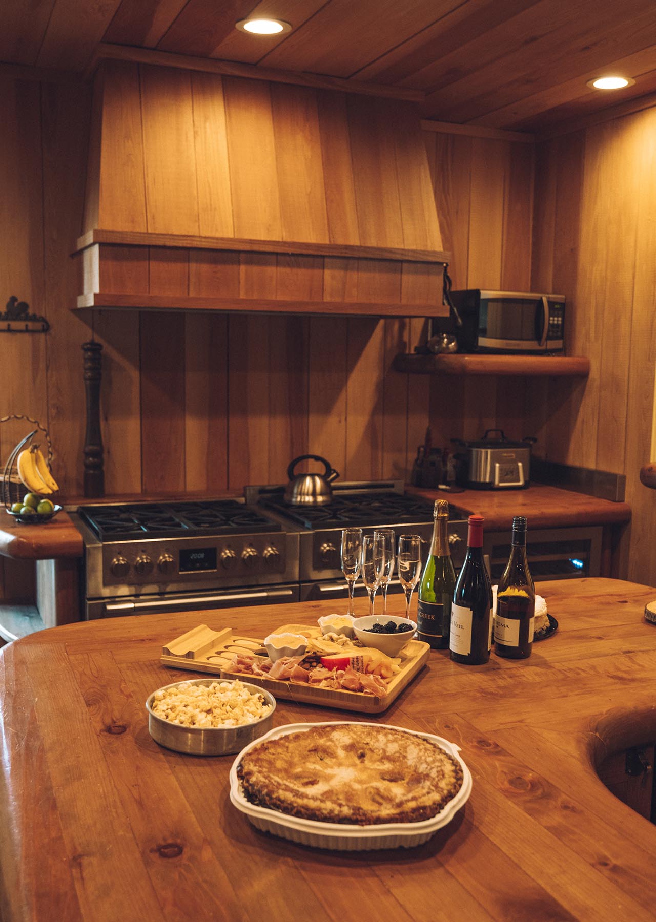 There are two separate kitchens so you’re not bumping elbows when you want to cook. The two full-sized kitchens are fully equipped with stoves, ovens, fridges, and all of the basics that you could have at home.