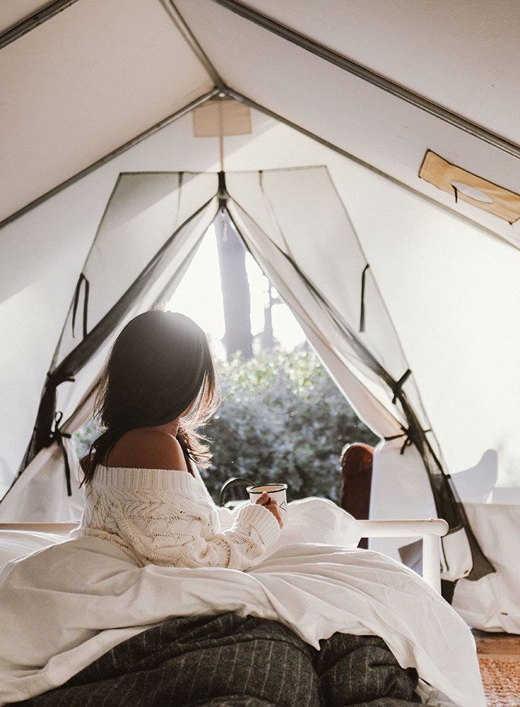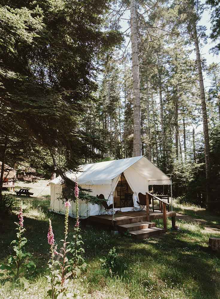 For a more adventurous stay, I love Mendocino Grove Glamping. These glamping tents are ideal for those who want to be outdoors and get a camping experience without the fuss. There are communal bathrooms and they even offer a dinner around the campfire (at an additional cost) as part of the stay.