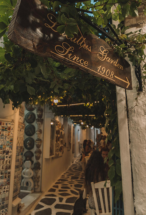 - Doukato: This place brings the romance! Hidden away in the courtyard of an old monastery — framed by flowers and climbing vines, no less — tables dot the cobblestones and it’s a place you simply won’t want to leave. The menu features a number of Naxian specialties, namely the saganaki kataifi, which is fried cheese topped with sugary phyllo. Yum!
