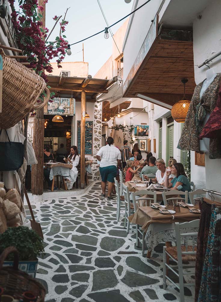 I’d recommend exploring Naxos Town during the day and then returning in the evening for dinner.